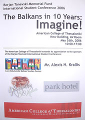 The conference will be introduced by talks from experts on Balkan matters and by the winner of the ACT essay competition, the Borjan Tanevski Scholar 2006.